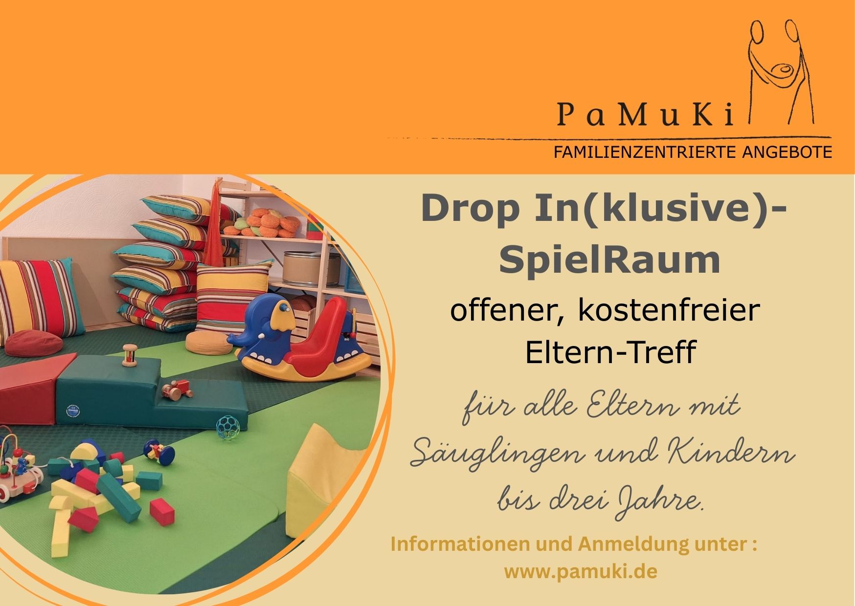 Wir bieten den Raum, ihr müsst euch nur verabreden und vorbeikommen. Wir freuen uns auf Dich und dein Kind!